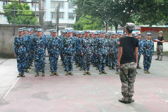 大会上,进入决赛的班级组成3个方阵,个个精神抖擞、士气高昂,在教官的号令下动作整齐划一、口号响彻操场,均进行了精彩的汇报表演。