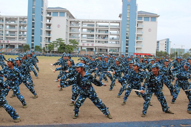 首先,在军训教官的带领下新生们进行了军训队列会操。队列方阵中的新生们动作整齐、动作有力、配合默契、口号响亮,展示了良好的军事素质、优良的作训技能和干练的行事作风,赢得在场师生一致好评。随后,由新生组成的表演队伍在教官的指引下,进行了擒敌拳、匕首操的表演。学生们的一招一式,虎虎生风、英姿飒爽,充满了青春的激情,点燃了会场的气氛,场上的掌声接连不断。然后,学校副校长陈志超做了总结讲话,鼓励新生们继续保持良好的精神状态和严格的军事作风,投入新的学习生活。最后,大会宣布了队列评比和内务评比的获奖名单,在场领导为获奖的学生代表颁奖。